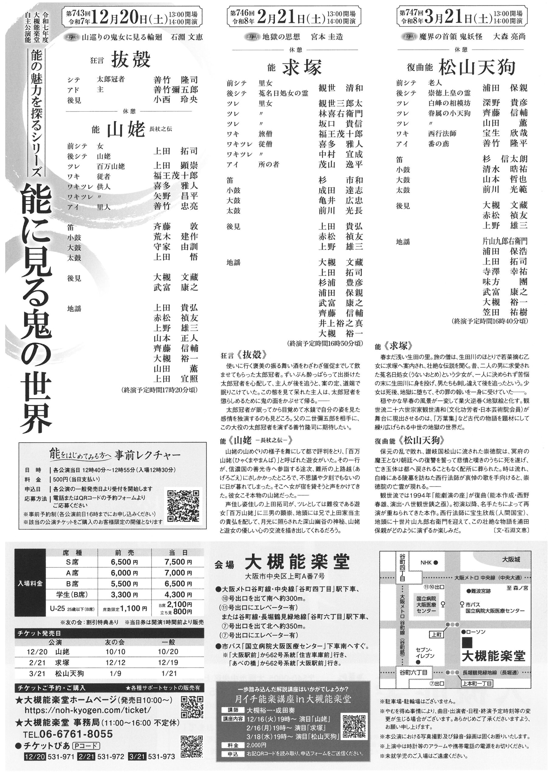 入場券販売:大槻能楽堂、ローソンチケット、イープラス、チケットぴあ他