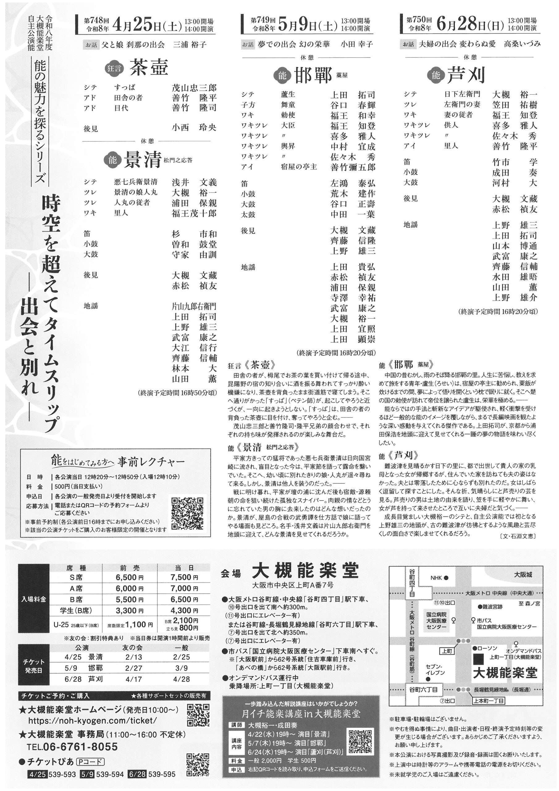 予約・問合:大槻能楽堂事務局 06-6761-8055 https://noh-kyogen.com/